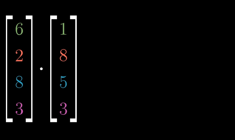 \[ \begin{pmatrix}\color{green}a&\color{red}b \\\ \color{green}c&\color{red}d \end{pmatrix}\begin{pmatrix} x \\\ y\end{pmatrix} = \underbrace{x \begin{pmatrix}\color{green}a \\\ \color{green}c \end{pmatrix} + y \begin{pmatrix} \color{red}b \\\ \color{red}d \end{pmatrix}}_{\text{直观的部分这里}} = \begin{pmatrix}\color{green}{a}\color{black}{x}+\color{red}{b}\color{black}{y} \\\ \color{green}{c}\color{black}{x}+\color{red}{d}\color{black}{y}\end{pmatrix} \]